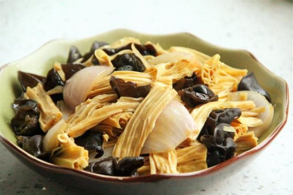 腐竹做法6:洋蔥木耳炒腐竹