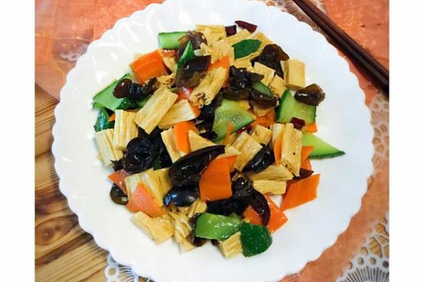 腐竹做法4:腐竹木耳黃瓜炒