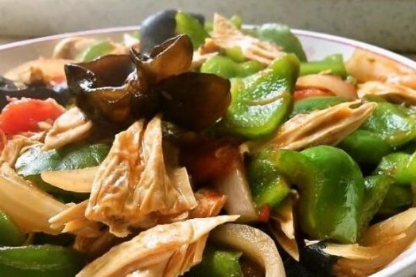 腐竹做法17:青椒木耳炒腐竹