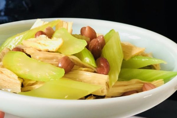腐竹做法9:西芹腐竹拌花生
