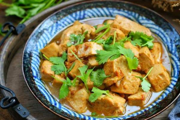 紅燒北豆腐 食材:北豆腐500克、蔥姜蒜各適量、蠔油1湯匙、紅燒醬油1湯匙、花椒粉少許、油鹽適量、香菜1棵。