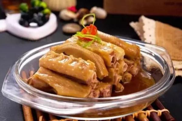 4.高湯與傳統川式鹵水所用湯的熬制方法差不多,也是要用雞、鴨、豬棒子骨、雞骨架等原料加清水和姜蔥熬制,但要加入大量豬肉皮,以使鹵水有一定的稠度。