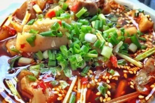 蔥段、姜片各200克,鹽50克,味精、雞精各30克,酸辣汁100克,蔥花40克,花生碎7克,紅椒圈5克。