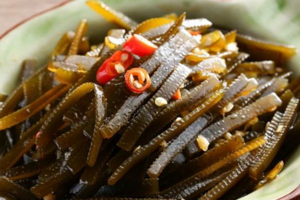 食材:海帶絲、大蒜、小米椒、蔥花、生抽、醋、糖、辣油、食用油