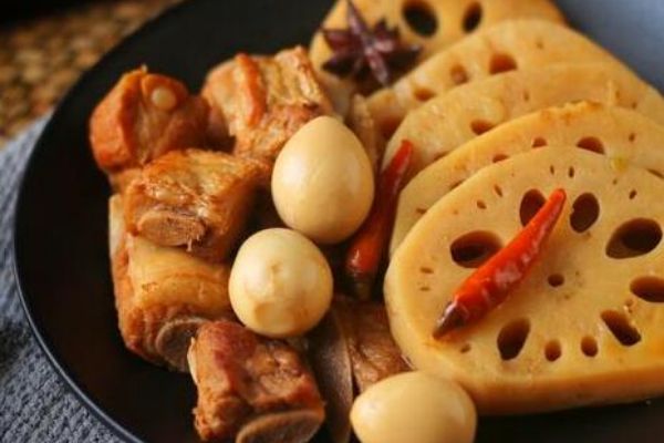 主料:豬肋排500克、鮮藕(脆非粉)1000克、鵪鶉蛋500克。