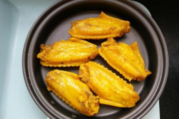 6、燜好的雞翅撈出就可以吃了,但是為了皮更緊致,肉更香,我們還可以多做一步。有兩個法子,一種是出鍋之后抹上一層香油,入冰箱冷藏。第二種是用不粘鍋將雞翅稍微煎一煎。