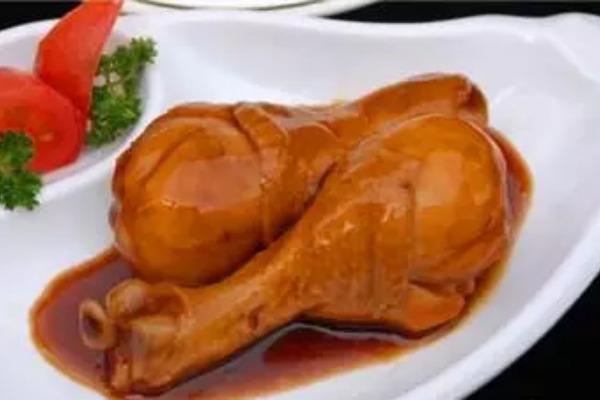 6.再放少許雞粉進(jìn)去調(diào)味,把雞腿鹵至熟即可。