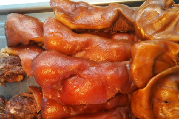 紅鹵汁是指在黃鹵汁的香料﹑調料的基礎上,添加可食用紅麴米為調色原料,以增強鹵汁的艷紅色度,以滿足成菜品種的上色及感觀需求。在實際運用中,常見運用于“風味豬蹄,尾,肘,牛肉”等的鹵制使用,但在腌碼原料時應嚴禁使用亞硝酸鹽等。