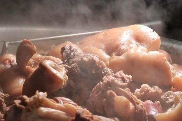 5、高湯熬好之后,將鹵料包和蔥姜取出來,再加入25g食鹽,就能開鹵了。根據自己的喜好,準備各種食材,比如牛腱、豬耳朵、鴨脖、雞爪等,常見的鹵味都可以。將準備好的食材分別焯水,處理干凈。