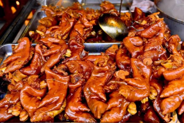 第三個(gè),就是對(duì)鹵豬蹄進(jìn)行合理浸泡。具體操作如下:將鹵水打出收濃調(diào)成醬汁,在出品時(shí)淋在砍成塊的豬蹄上,就著咸咸的鹵汁,成品會(huì)更入味且咸香味滿(mǎn)滿(mǎn)。