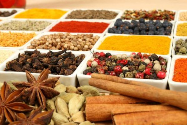 八角(又稱大茴香、大料)、桂皮(又稱肉桂)、桂枝、丁香(又稱雄丁香)、香葉(又稱桂樹葉、月桂葉)、小茴香、辣椒、花椒、孜然、麝香、檀香、沉香、蒔蘿、防風、白蘇、紫蘇、甘草、薄荷、藿香、羅勒、留蘭香、迷迭香、百里香、甘牛至(鼠尾草)、甘松、香茅草、牛膝萆、玫瑰、桂花、茉莉花等。