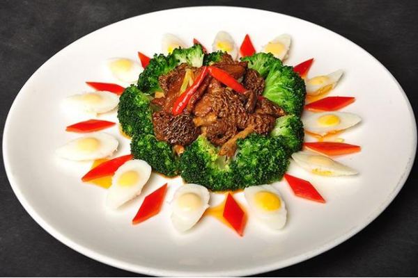 主料:羊肚菌500克、黃牛肉250克、西蘭花100克