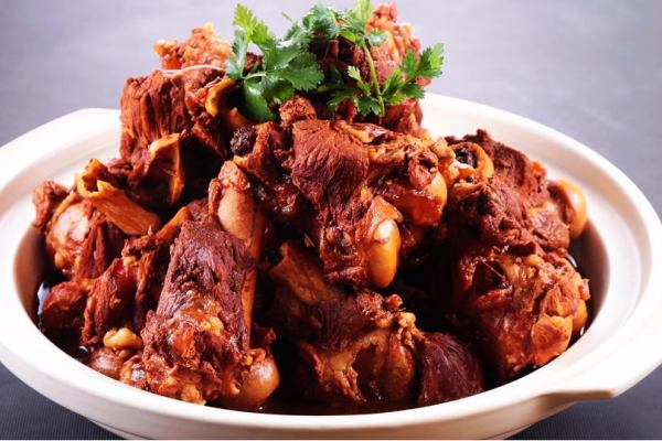2、第一步去血水采用長時間冷水浸泡而非更省時的“飛水”,也是為了更好的保持肉味。如采用飛水的辦法,因原料較大,較多,勢必要經較長時間的煮燉才能將血水除凈,肉味的損失也就不必說了。