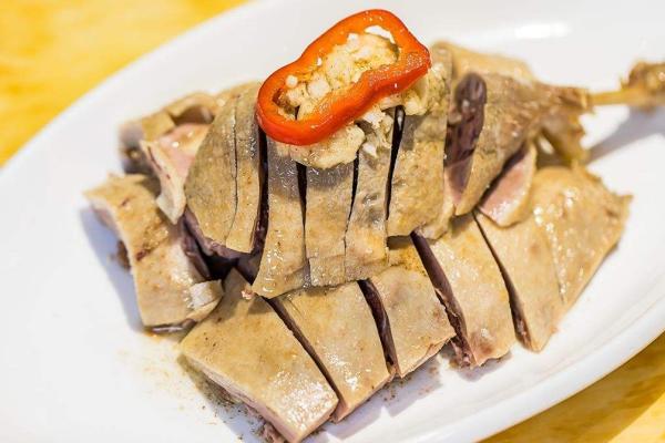特點:吳山自古就有腌制咸貨的傳統(tǒng),而吳山貢鵝正是用咸貨加上中藥調(diào)成的鹵水鹵制出來的,咸中帶鮮,骨中帶香,別具地方特色。