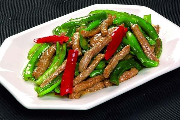 3.鍋內(nèi)倒油燒熱,下青椒炒熟,下鴨舌爆炒;