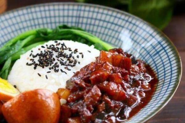 7 、最后盛入米飯,澆上鹵肉汁,再擺上燙熟的青菜葉、切開(kāi)的鹵蛋,就可以吃了。為了防止油膩,最好再另外準(zhǔn)備一盤青菜同食。