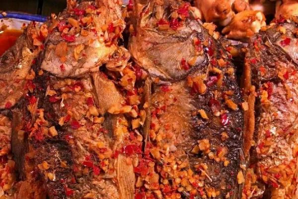 注:可以采用稍微大鯽魚,也可以采用小鯽魚,如果是小鯽魚的話,可以從腹部開膛,另外也可以撒入白芝麻作為點綴。