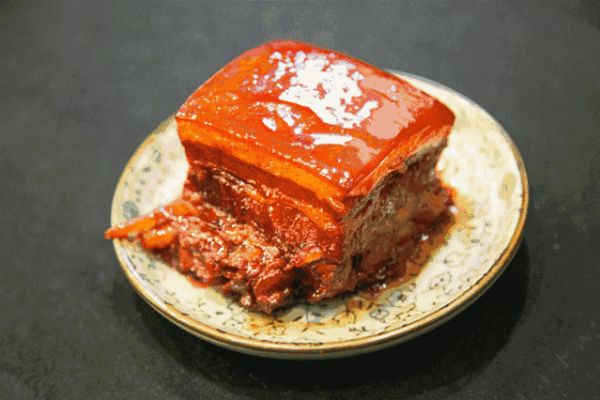 當(dāng)鍋內(nèi)白湯沸騰時加入紅曲米、紹酒和糖(用糖量為總糖量的4/5),再改用中火燜煮1h左右至肉色為深櫻桃紅色、湯將干、肉已酥爛時即可出鍋。出鍋時需用尖筷逐塊取出,放在盤中逐行排列,不能疊放。香料、桂皮、八角茴香可重復(fù)使用,桂皮用到折斷后橫切面發(fā)黑時為止,八角茴香用到角脫落時為止。