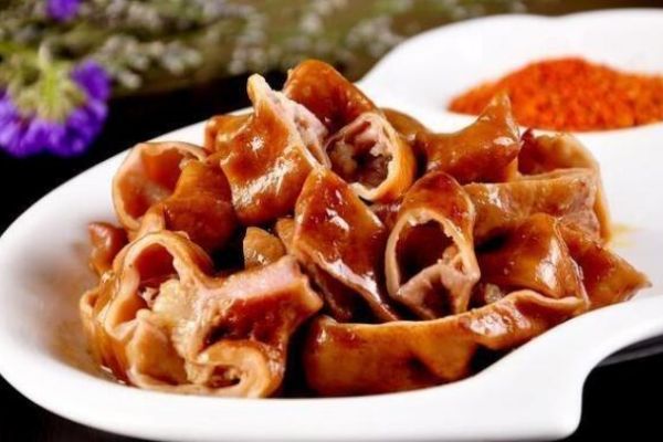 倒入大腸,在鍋中翻炒幾下,加入糖色適量,香蔥結(jié)一個,再加水,開始簡單調(diào)味調(diào)底色,加入食鹽兩湯匙,少許的老抽,再加入適量的啤酒,排骨醬少許,在大火燒開后,把其倒入高壓鍋之中,蓋上蓋子開壓,等到高壓鍋上汽后再壓上十五分鐘就可以了。時間到后,打開鍋蓋,加入耗油適量,少許的胡椒粉,一點點雞精,浸泡十分鐘就成了鹵水大腸了。