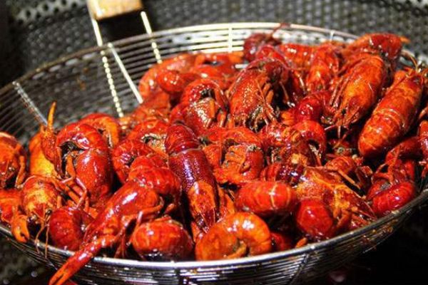 2、鍋內放子入色拉油,燒至五成熱時,放入小龍蝦小火浸炸2分鐘,撈出控油。