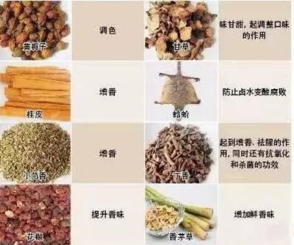 鹵水的“佐” 其余的香料也是輔助調(diào)香,即所謂的“佐”。操作方法前文已經(jīng)進(jìn)行了介紹。