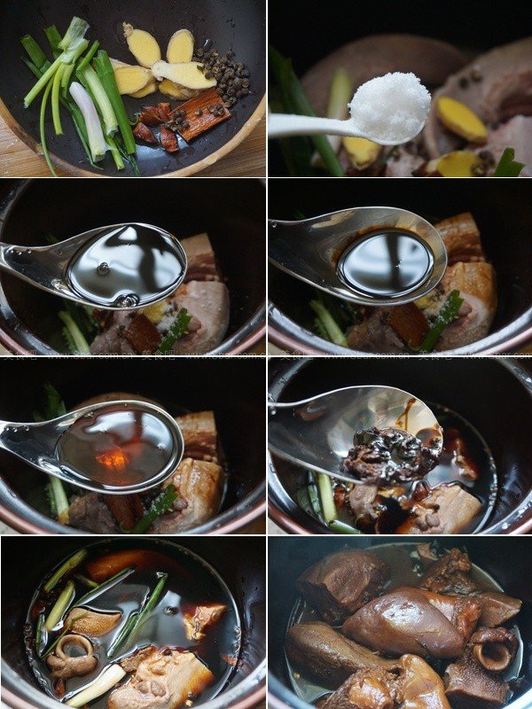 鹵料:姜15克,細蔥20克,八角15克,桂皮5克,花椒5克,老抽10毫升,生抽30毫升,鹽10克,紅糖15克,黃酒20毫升