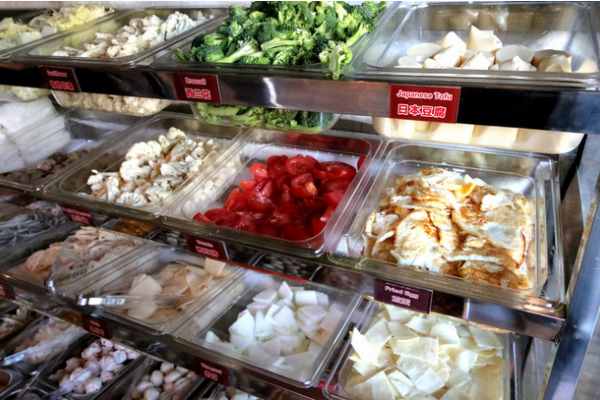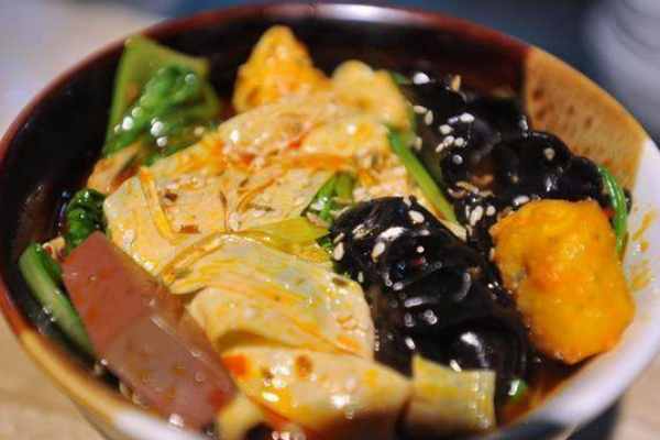 可燙的原料:粉絲,粉條,河粉,海帶,油菜心,綠豆芽, 白菜卷,雞肉絲,凈肉絲,豆腐泡等。客人吃得時侯先選料,燙熟后裝于碗中,澆上麻辣湯汁,撒上油酥花生,榨菜絲或丁,蔥絲,香菜段,淋上香油即可。