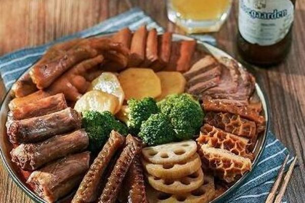 牛肚 適量、雞腳 適量、鴨翅 適量、鴨脖 適量、牛腱肉 適量、豆干 適量、西蘭花 適量、土豆 適量、蓮藕 適量