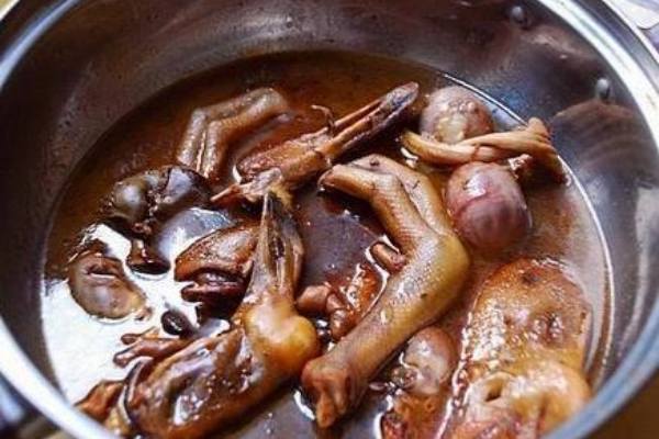7.鹵水每次鹵完食物后必須燒開保存,如果鹵水越來越釅的時候,就必須用雞血(一只 雞的血加1千克水)與水攪散倒進鹵水內(nèi)攪轉(zhuǎn)起旋渦,待靜止后再燒沸騰后用紗布濾去雜質(zhì)。