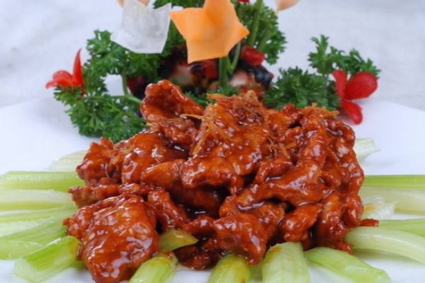 準備食材:牛里脊肉 250克、甜面醬 50克、雞蛋清 1個、白糖 15克、精鹽 7克、味精 2克、姜 10克、蒜 40克、香油 15克、料酒 25克、醬油 25克、濕淀粉 50克、蔥 50克、植物油 500克