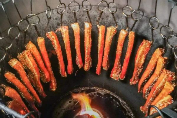 先將爐火燃起,待爐溫達到100度時,即可開始掛肉入爐,將肉面全部面對火芯,待爐溫達到160度時,將蓋上風門全部關閉,烤制20分鐘(注意溫度不要超過200度),正常就保持在180-190度。